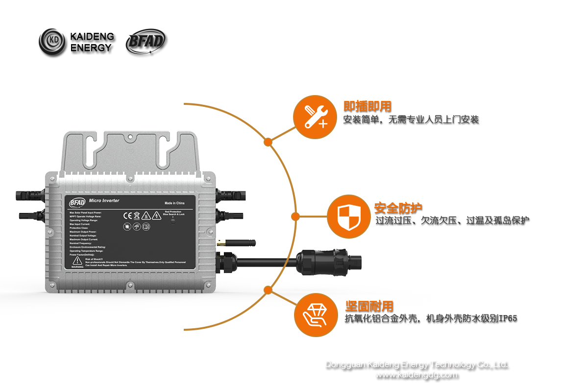 凱登能源第五代SMI系列通訊型產(chǎn)品采用防水流型線設(shè)計,可以更好的為設(shè)備提供散熱功能。內(nèi)置的最大功率點追蹤引擎(MPPT),可以更好地捕捉光照的變化,即使在陰雨天氣也能工作,通過它能最大程度的捕獲和收集陽光。逆變器兼容開路電壓為22~60V的多種常規(guī)太陽能面板,通過技術(shù)手段令面板發(fā)揮出它的最佳性能。 凱登微型逆變器的電力輸出模式為逆向傳輸技術(shù),優(yōu)先將電能供應(yīng)給負(fù)載,然后才將多余的電能上傳至當(dāng)?shù)仉娋W(wǎng),它的轉(zhuǎn)換效率高達(dá)93%,產(chǎn)品擁有多項國家發(fā)明及外觀專利,并且擁有CE,CEC,ETL,INMETOR等多個地區(qū)和國家的產(chǎn)品認(rèn)證。